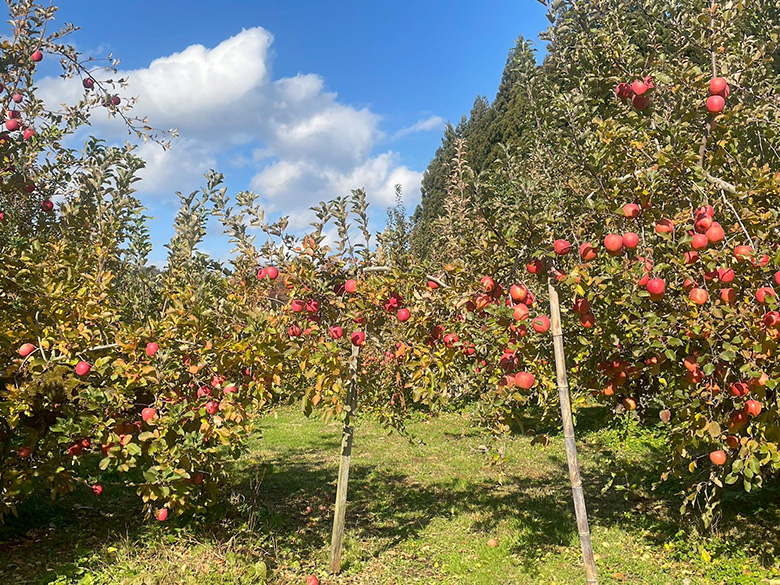 町内のりんご農園「幸作りんご園」「だいちゃん農園」では、旬の品種を自ら収穫できるりんご狩り体験を実施しています。