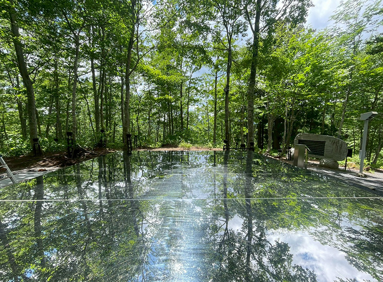 空気を御神体とした環境モニュメントは静かな森と調和し、訪れる人に深い印象を与えます。