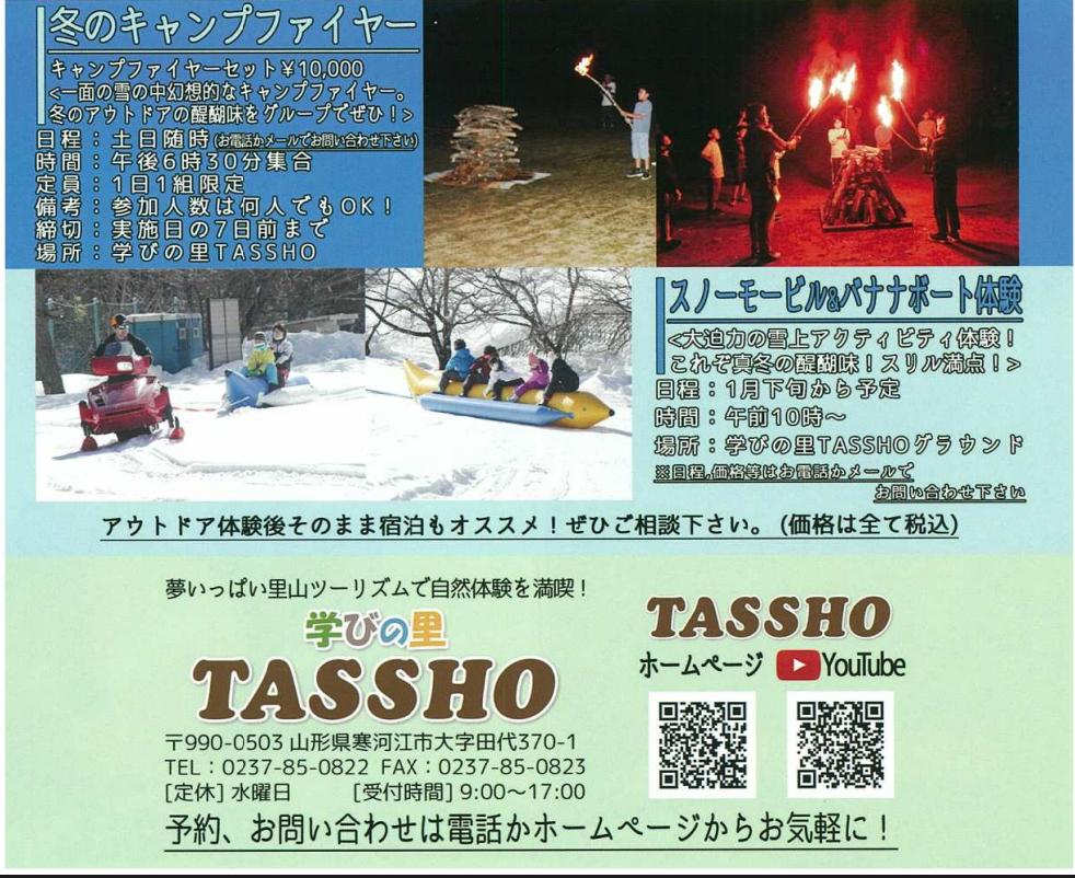 学びの里 TASSHO では、冬に楽しめる「冬のキャンプファイヤー」体験が出来ます。