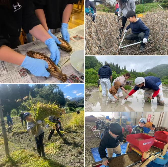 田植え、稲刈り、大豆収穫、味噌仕込み、納豆&豆腐作りまで、季節を通して「食の原点」を体験します。