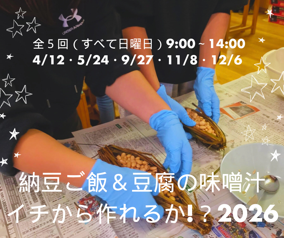 日本の定番メニュー「納豆ご飯と豆腐の味噌汁」を、栽培から加工まで全部体験する連続イベントです。
