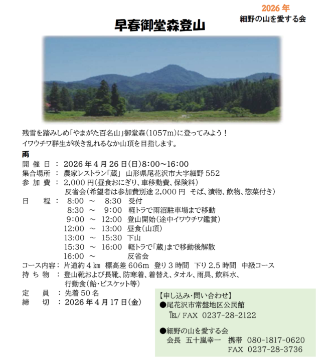 ◇ 費 用 2,000円/人 (昼食(おにぎり)、車移動費、保険等)